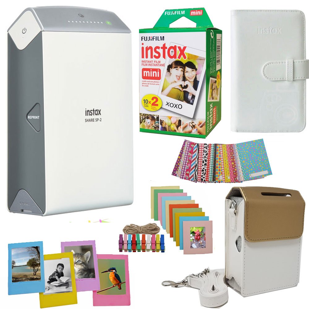 Abesons Fujifilm INSTAX Share SP-2 Smart Phone Printer (Silver) + Fuji Instax Film Mini Twin Pack (20PK) Fuji Photo Album + Accessories Kit/Bundle + Fitted Case + Frames and More