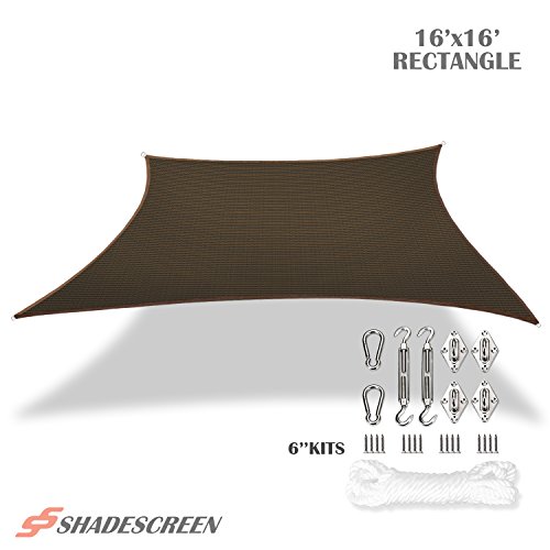 Shade Screen 16 x 20 Sun Shade Sail for Patio Backyard Deck UV Block Fabric with 8 inch Hardware K